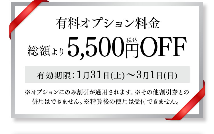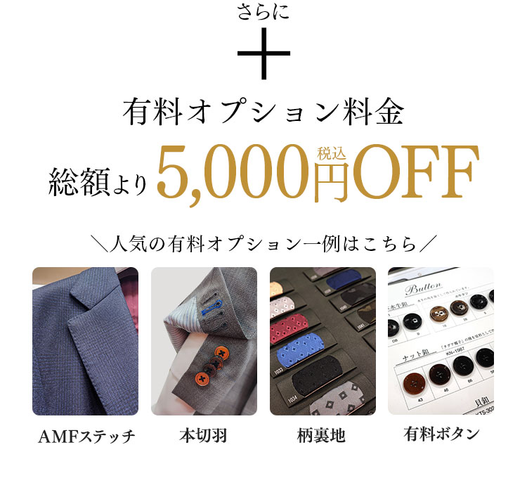 あなたの次の一着を、もっとお得に・もっと早く。オーダースーツ特別クーポンをご用意しました。 私たちは長年にわたり、こだわりのオーダースーツをお届けしてきました。これまで当店でお仕立ていただいたお客様の多くが、2着目・3着目と繰り返しご利用いただいています。その信頼に応えるため、今回は「今までオーダースーツを作ってくださった方限定」の特別ご優待を実施します。 特別クーポン 1.ONEオーダースーツ1着限定5500円オフ 2.インポートブランドスーツ1着限定11000円オフ 3.有料オプション料金総額より5000円オフ ※今までオーダースーツをお仕立ていただいた方限定。※その他割引券との併用はできません。※清算後の使用は受付できません。